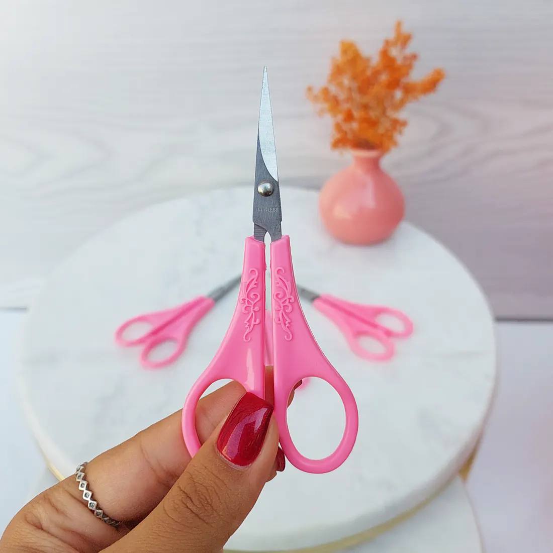 قیچی ابرو دست صورتی ((قیمت بسته ۱۲ عددی))