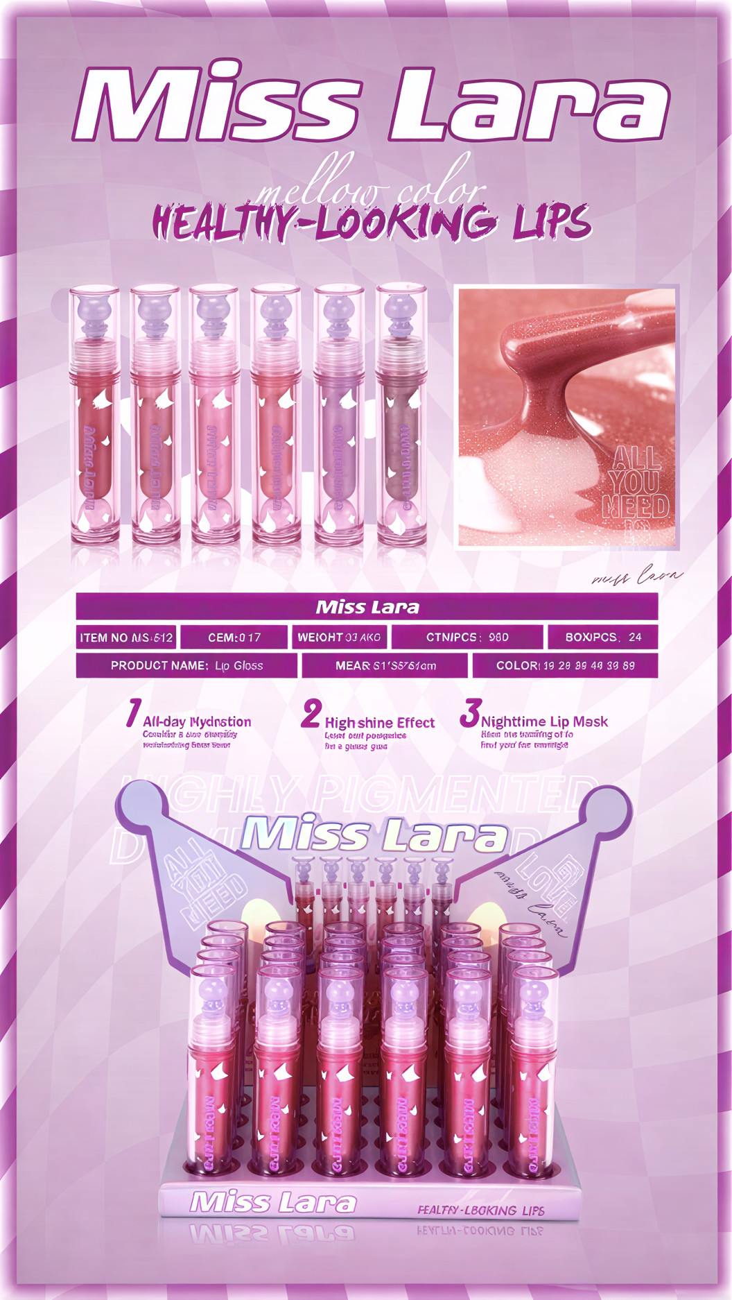 شاین لب پوکه بنفش miss lara عمده ((قیمت بسته ۲۴ عددی))
